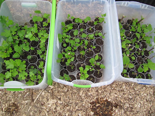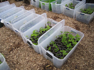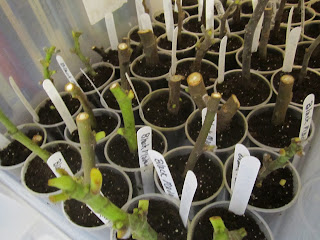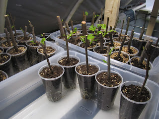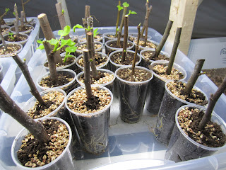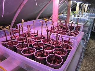 We've also been rooting lots of cuttings in humidity bins, and they're starting to push out nice roots:
