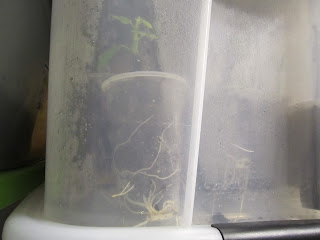 We've also been rooting lots of cuttings in humidity bins, and they're starting to push out nice roots:
